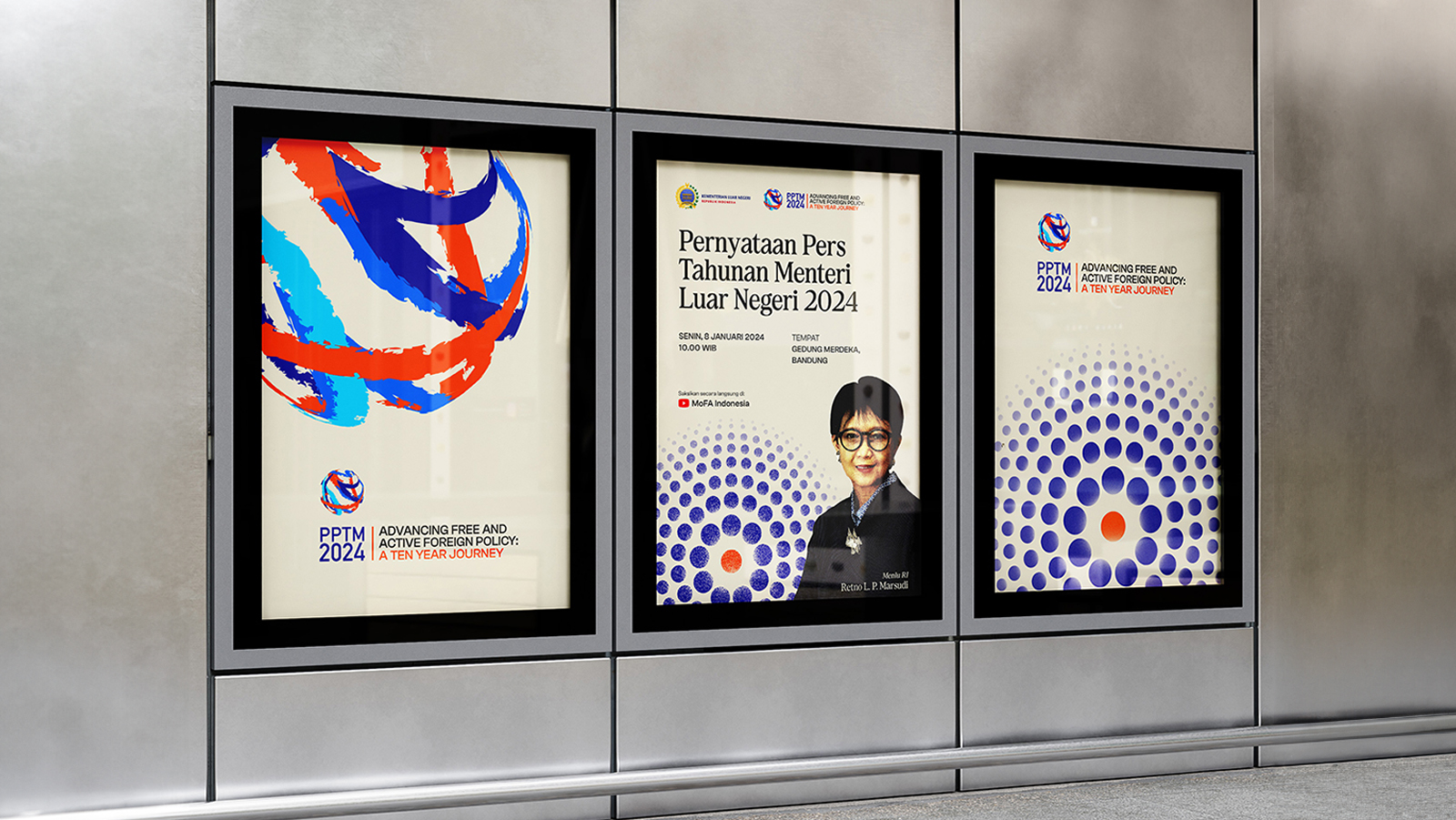 The visual identity and motion graphics for a global event held by the Ministry of Foreign Affairs of the Republic of Indonesia, the "2024 Annual Press Statement of the Minister for Foreign Affairs" or "Pernyataan Pers Tahunan Menteri Luar Negeri 2024"