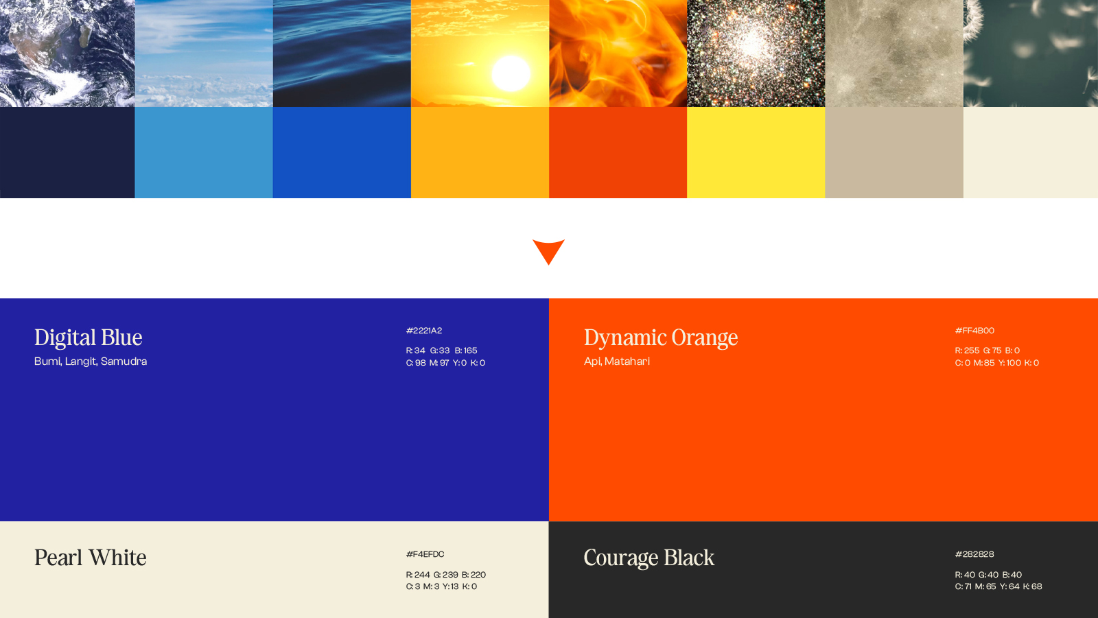 Inspired by the spirit of a leader, we created PPTM 2024 identity through “Hasta Brata” values. A leader’s values are symbolized by natural elements. The colors of PPTM 2024 are the direct representation of Hasta Brata. Visualization of the blue circles orbiting in the course of a red circle is the definition of Indonesia as a leader of the global south countries in bringing out sovereignty.