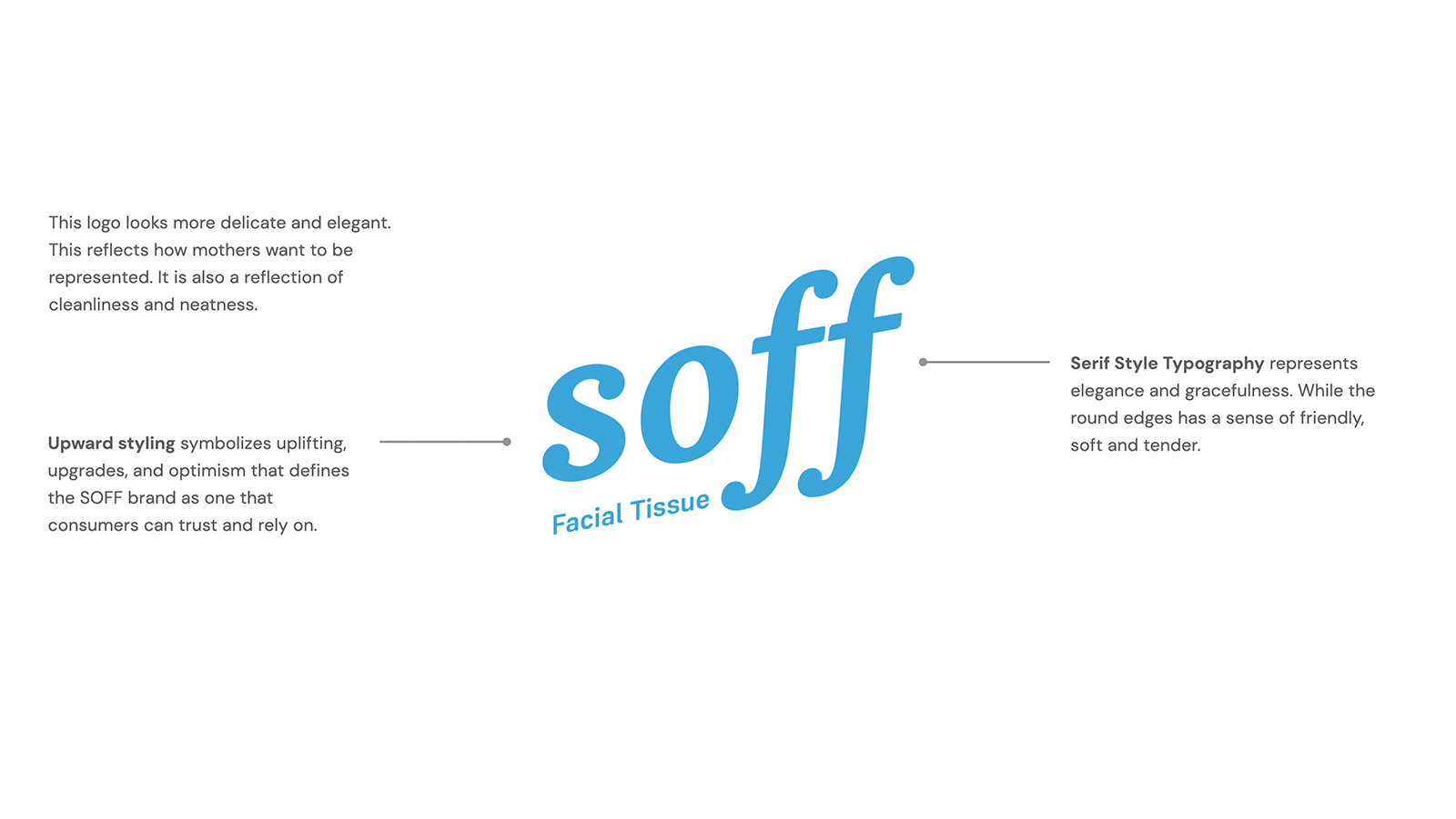 The visual concept of SOFF is inspired by the “flower”. Flowers can convey the brand values, keywords, essence, and something that connects to the target market. It's comforting, calming, and beautiful at the same time. Something that reflect how SOFF tissue can wipe all mom's worries.